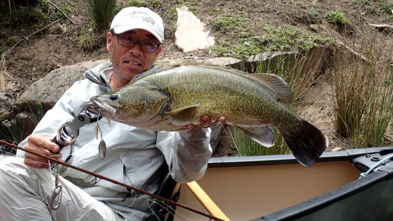 11月は、マーレーコッドは禁漁期となりますが、11月に釣行をご希望の方は、すでに禁漁期の明けたグレートディバンディングレンジの東側に生息するイースタンコッドをターゲットにすることになります。この場合、付近には宿泊施設がないので、キャンプ泊の釣行となります。この流域は、大型のオーストラリアンバスも釣れます。