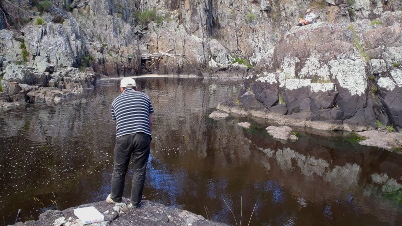 この付近は、ニューイングランド地方でも、グレートディバイディングレンジに近く、インバレルやアッシュファードといった同じニューイングランドの他のエリアより極端に谷が深く、川までのアクセスが容易ではありません。それに私有地となる放牧地の中に川が流れていて、一般道から川へアクセスするためには、いくつもの私有地を通り抜け、川までアクセスできるルートを熟知しておく必要があります。弊社契約のフィッシングガイドは、現地に住むローカルガイドで、付近の地理に精通し、川が流れる私有地のオーナーとも良好な関係を保っています。